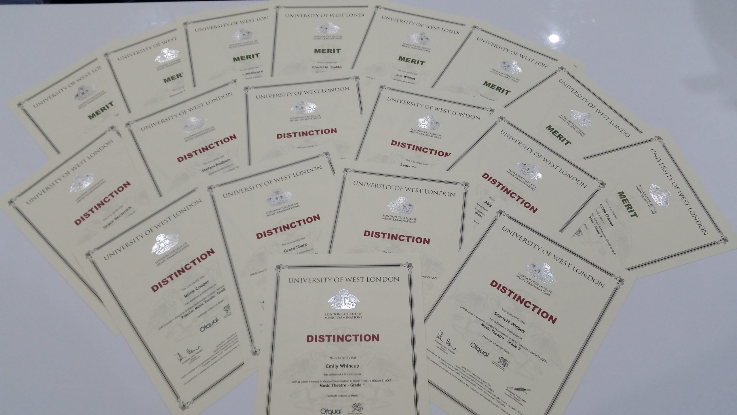 We have just received our Spring Exam 2016 Certificates and our students have done excellent with Merits & Distinctions across the board!